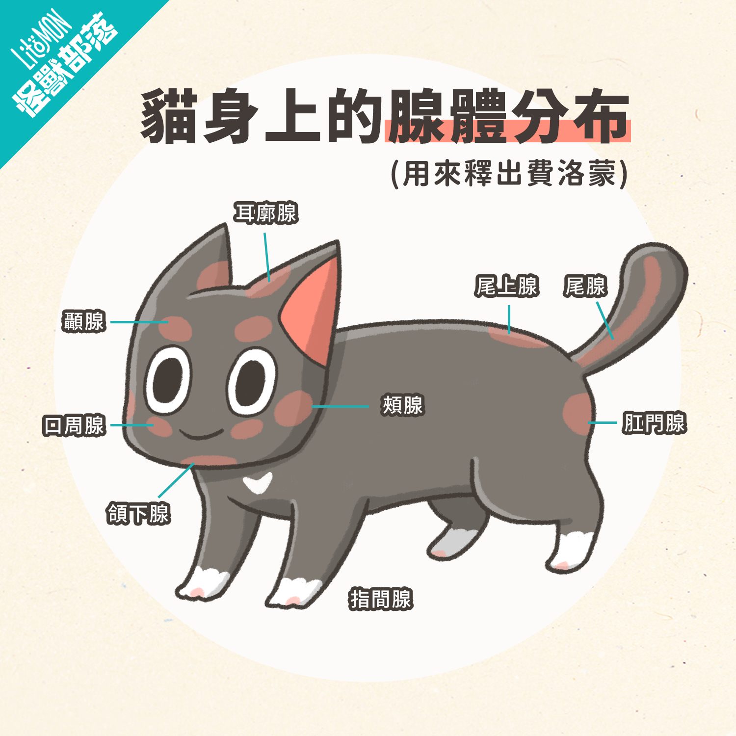 貓咪身上有許多氣味腺體,在磨蹭時會釋放費洛蒙,就像在物品和人身上「打卡」,標記這是牠熟悉且安心的環境或對象,而不同部位的腺體,分別代表不同的含意,是不是很有趣呢?