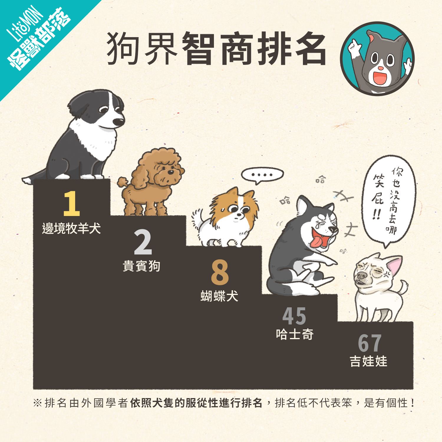 哥倫比亞大學教授曾經對 80 種狗嘅工作服從性同智商做過排行,「二哈」獲得咗第 45 名~