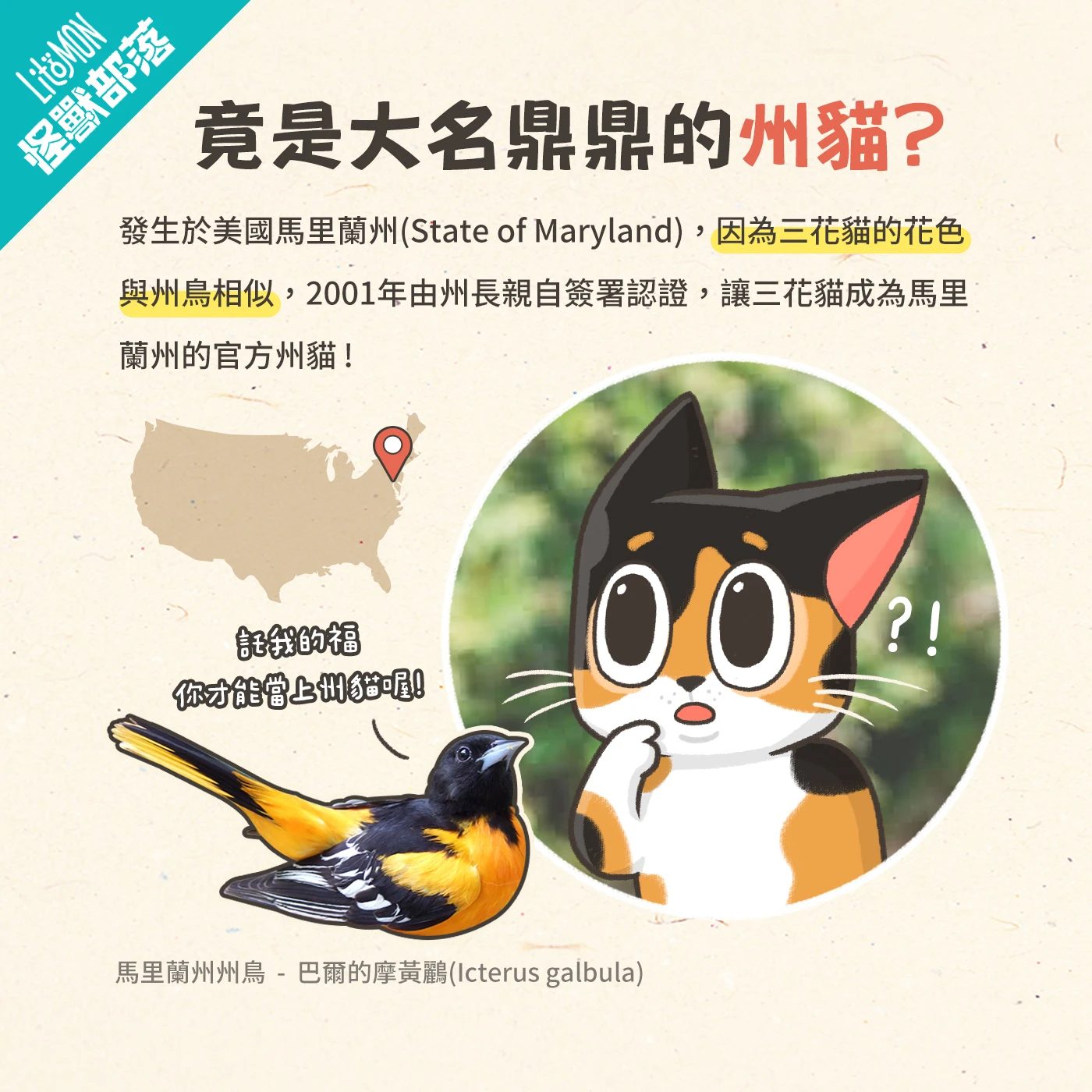 冷知識:三色竟然係美國州貓?
