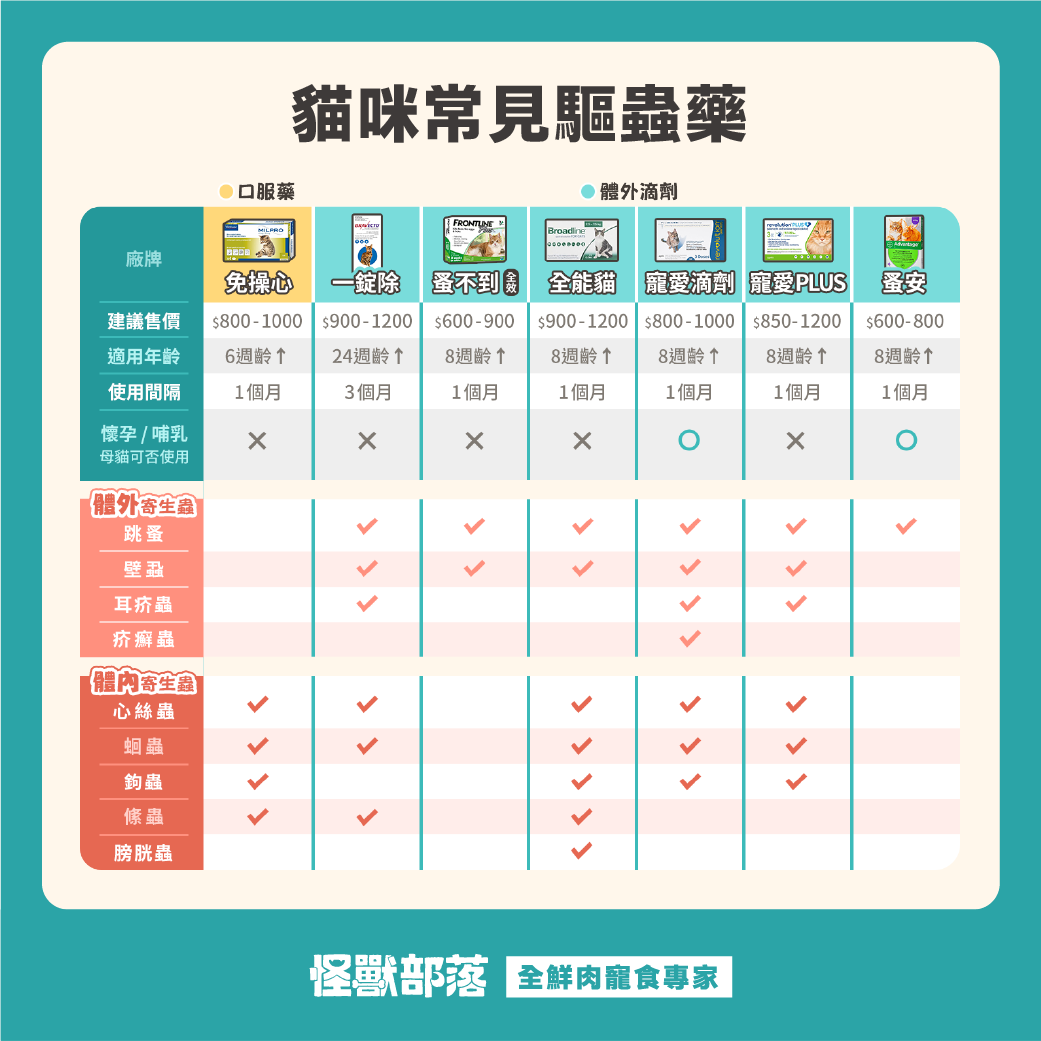 我們特別整理了一份貓杜蟲藥比較表,助你輕鬆挑選最適合的產品!