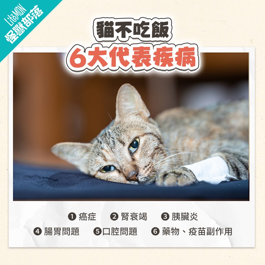 好多貓科疾病都會帶嚟隱性嘅痛楚或不適,間接影響到食慾,所以「食慾不振」亦被視為重要嘅疾病徵兆,而且好多時會伴隨其他症狀一齊出現。以下就列出幾種貓唔食嘢可能代表嘅常見疾病: