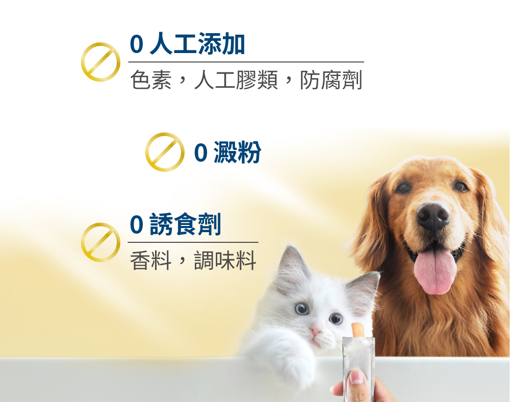 我們堅持並保證不添加任何加工食品,絕不含防腐劑、誘食劑、香精、人工色素等,對毛孩有害的添加物。肉泥嗜口性來自長達2年的技術開發,透過天然水解、選用純肉、高數研磨等高端技術,結合寵物嗜口性研究,才有辦法製成符合毛孩習性、愛吃的風味。