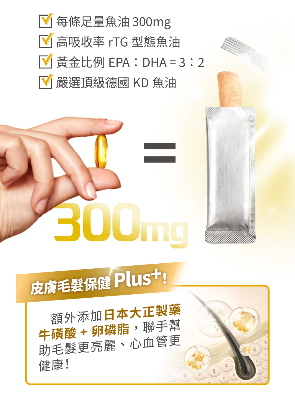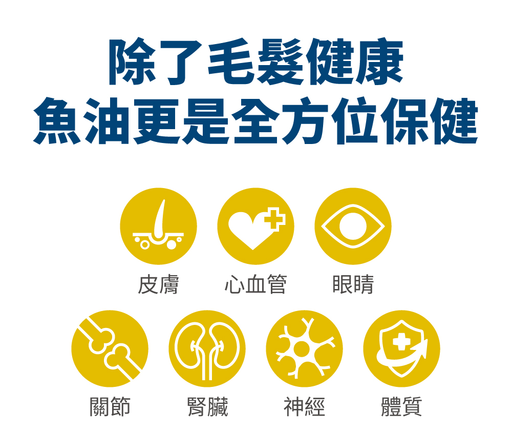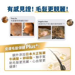 魚油除了可亮麗皮膚毛髮,也對眼睛、腦部、心臟、神經、腎臟等部位皆有幫助,屬於多功能保健品,適合各種場景。此外,也另外添加卵磷脂及牛磺酸,額外幫助皮毛柔順及心血管保健。