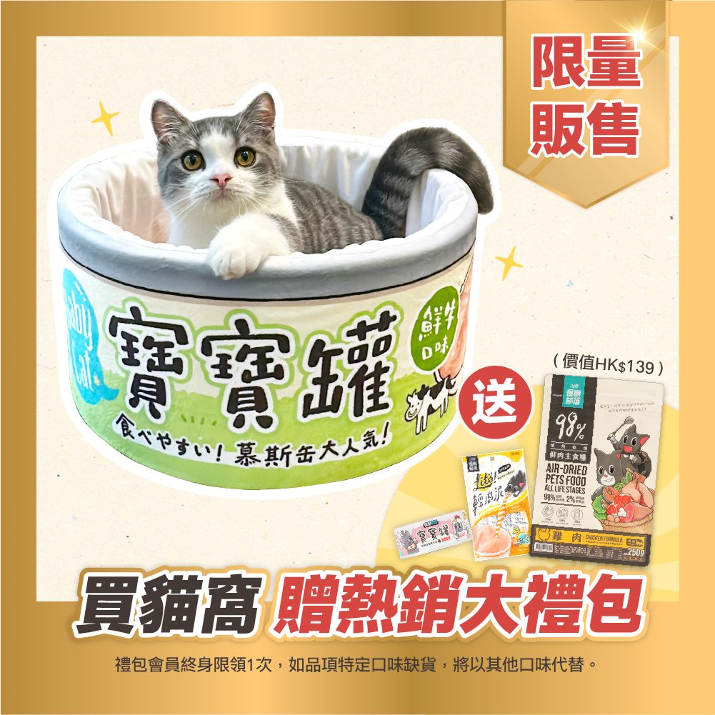 ✦購買 寶寶罐貓窩 即贈熱銷大禮包✦ 禮包內容:98%鮮肉糧250G*1 + 寶寶罐82G*1 + 輕肉泥*1