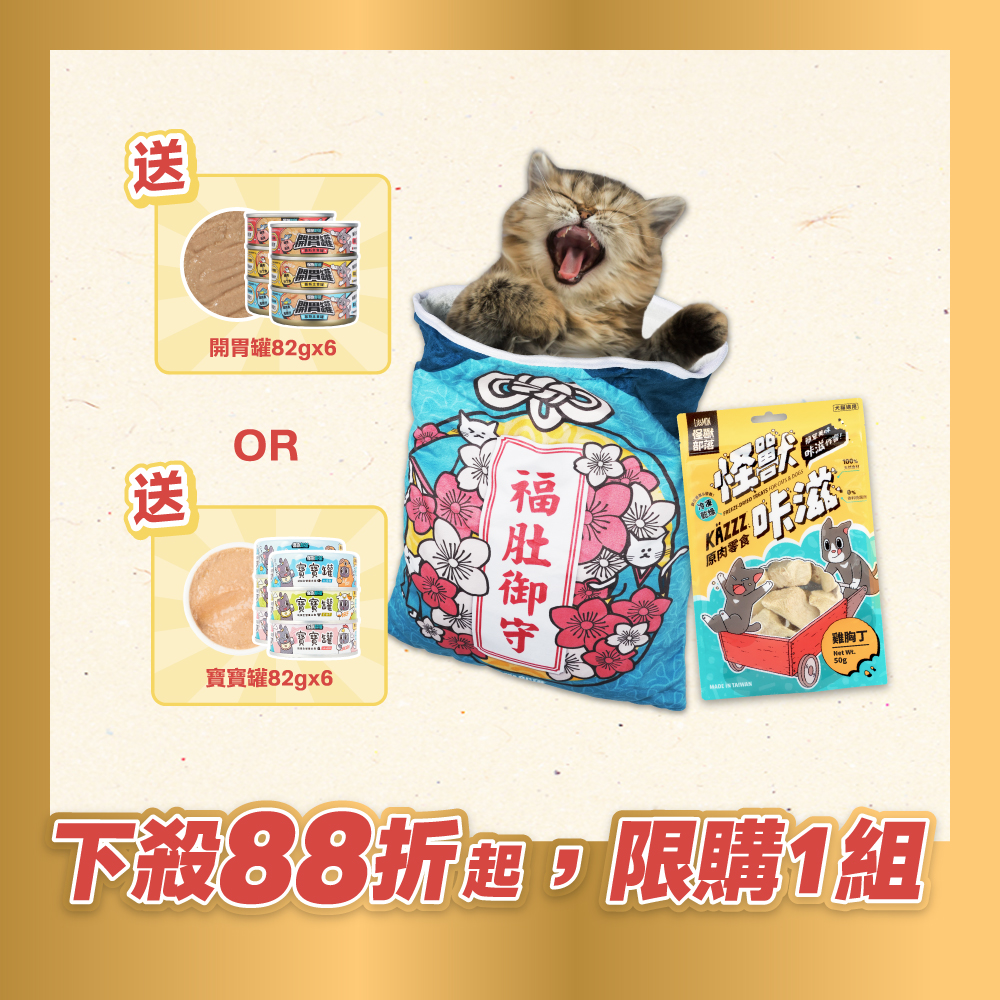 【體驗組】內容物:開胃罐or寶寶罐 各6 +凍乾雞胸丁*1 + 御守貓窩*1