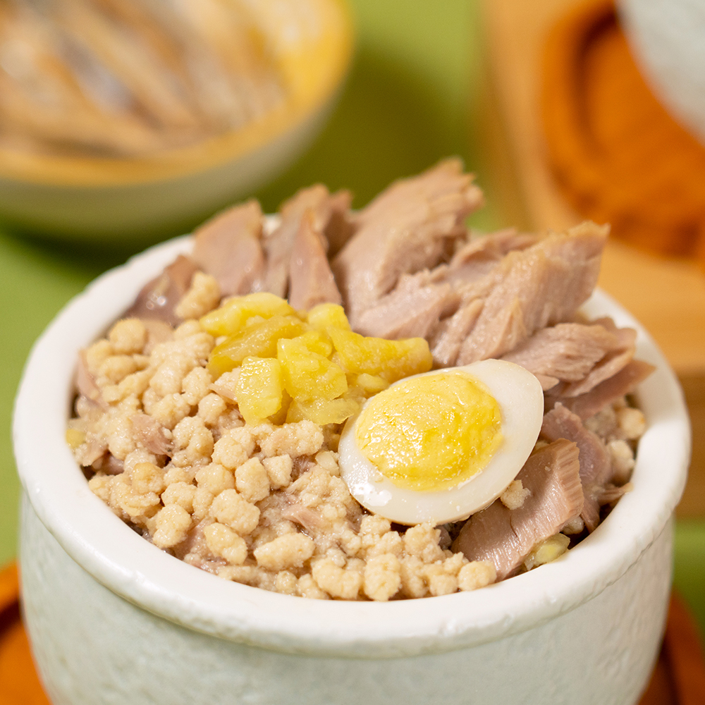 料多味美的佛跳牆,成分配比經過多次調整,使熱量及脂肪含量適中,貪吃的小怪獸也不用擔心變胖!但仍建議適量給予,讓小怪獸的日常飲食以主食為主哦!