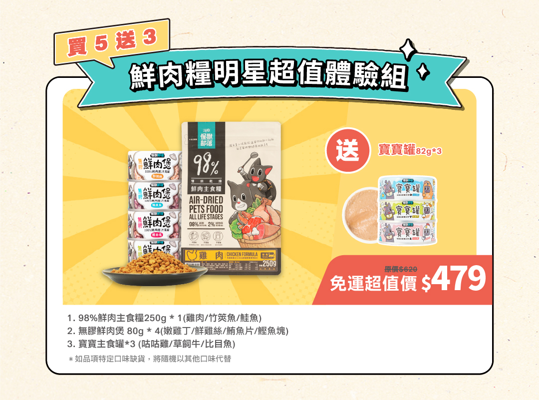 【貓用】98% 鮮肉主食糧|明星超值體驗組